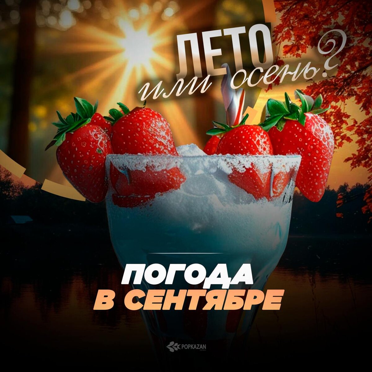 Сентябрь в Казани — это когда лето уже ушло, но зима ещё не началась Средняя температура днём — около +15°C, и хотя ещё можно гулять без шапки, зонт лучше всё же взять с собой. Почему? Потому что: ☁️ Пасмурно — 11 дней 🌧 Дождь — 10 дней ☀️ Ясно — всего 5 дней ❤️ - если любимое время года 😁 Наш telegram-bot про Казань
