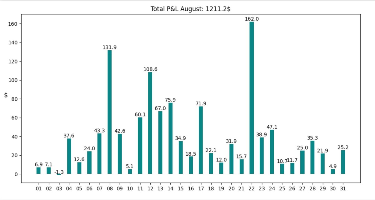 Заработано за Август 1211$ ✅ Кого ещё нет на bybit, регистрируйтесь: https://www.bybit.com/invite?ref=D7BOD4 Как купить USDT за рубли в РФ: https://artydev.ru/posts/crypto Алготрейдинг: algotrading robot Сайт с описанием: arthem.pro