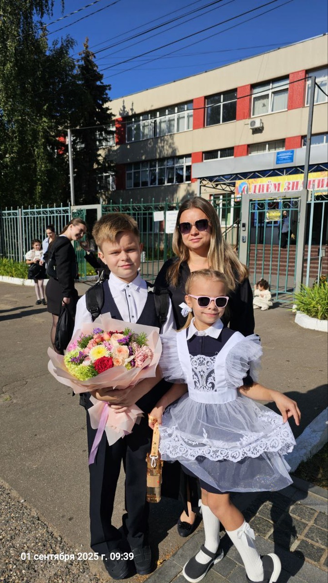 Наш первый сентября. Вот, пожалуйста, полюбуйтесь на нас, а также на этот прекрасный букет, который радует глаз своей красотой. Каждый цветок в нём выращен с любовью и заботой на домашнем участке. Жена приложила все усилия, чтобы создать эту потрясающую композицию. Без сомнения, этот букет полон тепла и душевности.