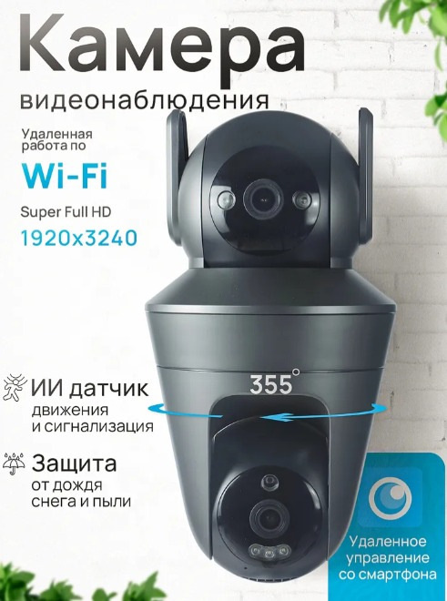 Богатый функционал: Камера оснащена двумя поворотными двигателями, что обеспечивает панорамный обзор на 360 градусов без слепых зон.