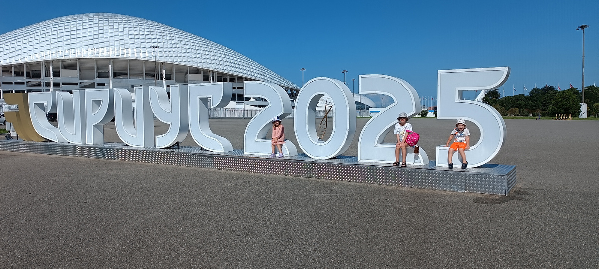 Ходили до моря в жару по Олимпийскому парку, там всё закатали в асфальт. Место хорошее для катания на самокатах, на велосипедах, посмотреть поющие фонтаны. Больше там делать нечего. Ну ещё посмотреть на медальную площадь.