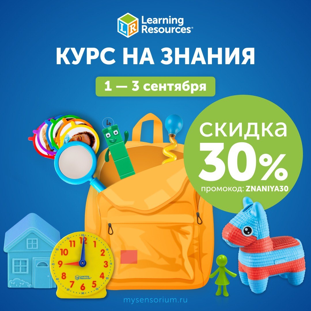 🔔1 сентября – старт для новых знаний, открытий и… скидок! Дарим 3️⃣0️⃣🔤 на ВСЕ игрушки с сайта по промокоду ZNANIYA30 Выбирайте всё, что давно хотели: • маленькие ручки • зеркало эмоций • ровные строчки • NumberBlocks Пусть учебный год начнётся с увлекательных приключений вместе с Learning Resources Забирайте подарки к 1 сентября прямо сейчас: *️⃣ ЗА ПОДАРКАМИ *️⃣ Предложение действительно до 3 сентября или пока наши запасы праздничного настроения игрушек не закончатся! 😉