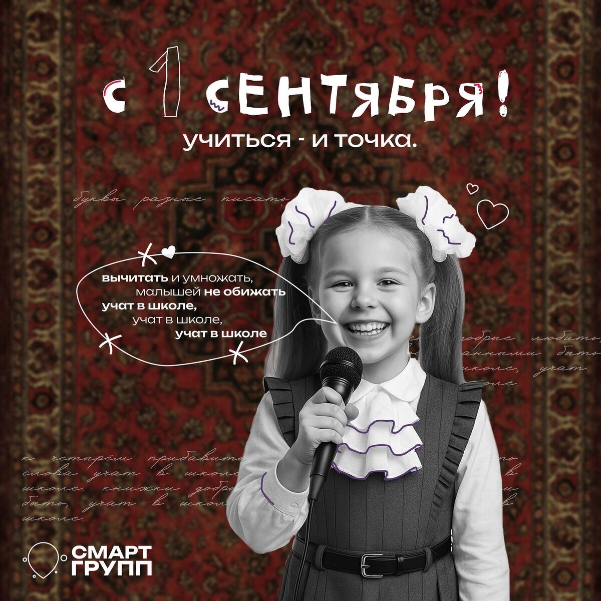 🍂Время учиться — и точка. 1 сентября — это не просто конец лета, а начало большого пути, полного открытий, интересных задач и важных побед. 🎓Команда Смарт Групп желает всем ученикам, студентам, учителям и родителям легкого и успешного старта. Пусть этот учебный год для всех нас будет: ✨Успешным и продуктивным; ✨Ярким и вдохновляющим; ✨Наполненным любопытством к новому. Мы верим, что стремление к знаниям — это главная движущая сила прогресса. Пусть ваш багаж идей и умений пополняется с каждым днём! #Смарт_групп_поздравляет#1_сентября#День_знаний