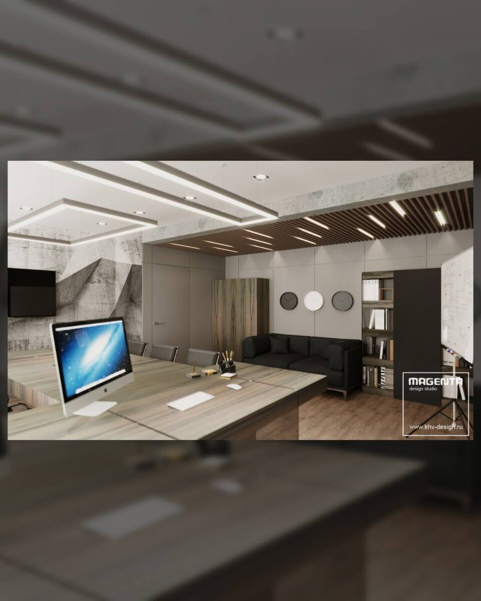 🌿 Первый — минималистичный кабинет директора. Чистые линии, натуральные материалы и технологичный настрой создают атмосферу для точных решений. Идеальное пространство для командных брейнштормов и стратегических встреч.