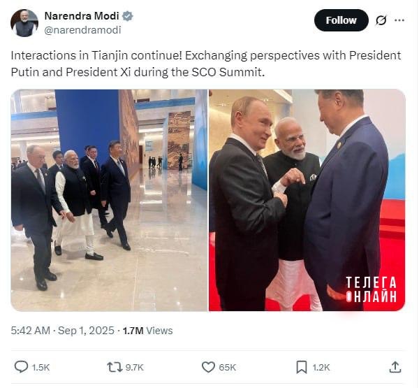 Дональд грустит, что его не позвали? США обратились к европейским странам с призывом ввести санкции в отношении Индии, аналогичные американским, включая полное прекращение поставок нефти и газа. Судя по соцсетям Моди, забитым фото с Путиным, давление на Нью-Дели обречено на «успех». Кстати, у них прямо сейчас идет двусторонняя встреча. 🚲 Подпишись на Телега Online