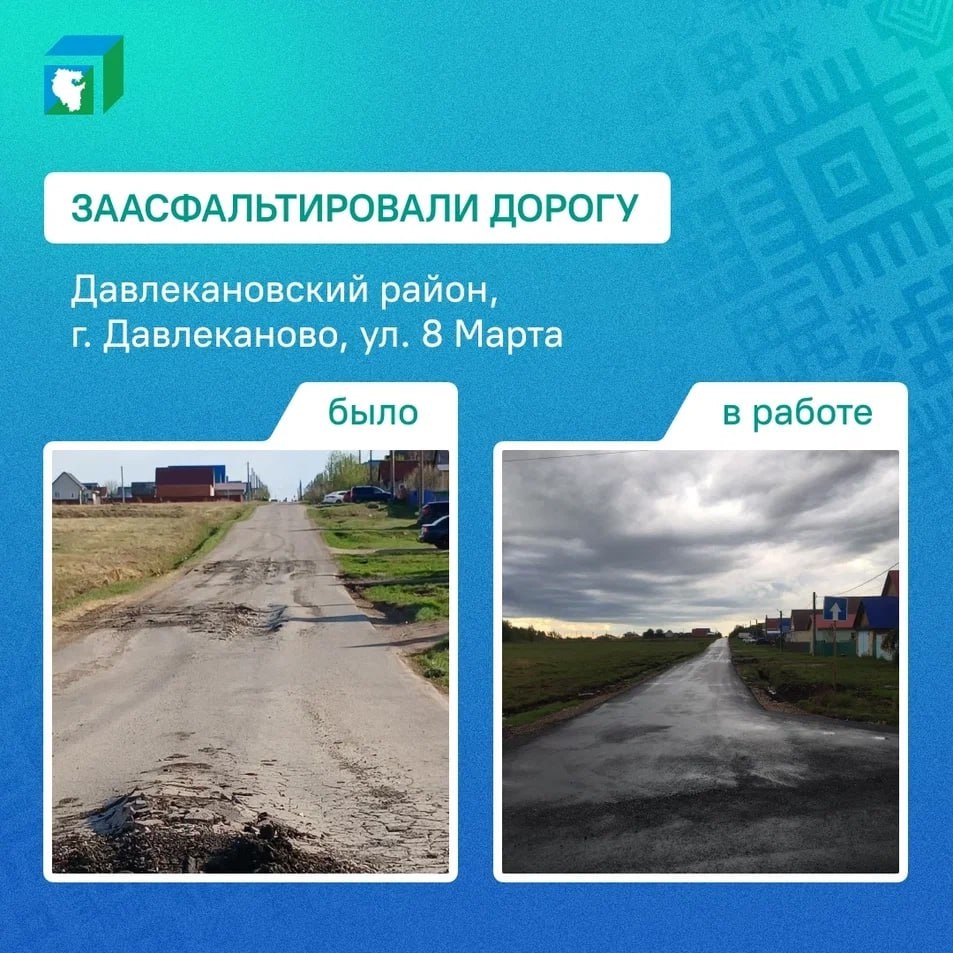 😀😃😄😁 26 июня 2025 года жительница г. Давлеканово написала в соцсети и попросила привести в порядок дорогу по ул. 8 Марта. Сообщение зафиксировали информационные системы Центра управления республикой. Администрация Давлекановского района взяла вопрос на контроль. В июле специалисты подрядной службы приступили к работам. 28 августа дорогу по ул. 8 марта заасфальтировали. 💚 ЦУР Башкортостана