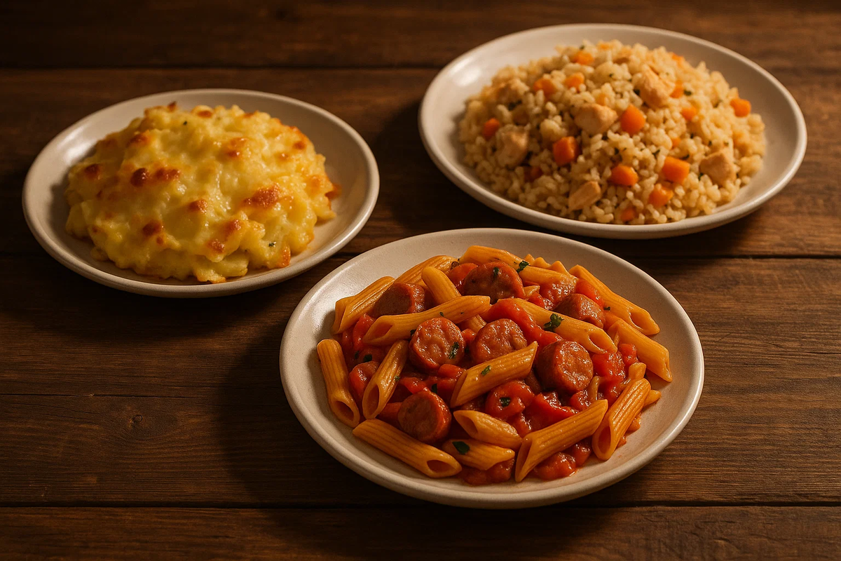 Скажу честно: если вечером я вижу в рецепте больше пяти ингредиентов — книга сразу закрывается. После работы хочется не кулинарных подвигов, а простого ужина, который накормит семью и оставит время на отдых. И вот тут есть маленькая хитрость: достаточно трёх продуктов. Звучит слишком просто? А ведь именно простые блюда чаще всего оказываются самыми любимыми. Три продукта — это не ограничение, а свобода. Минимум хлопот, максимум вкуса. Ингредиенты (на 2–3 порции): Как приготовить: 💡 Совет: используйте сыр с более ярким вкусом — например, гауда или чеддер. Тогда блюдо получится насыщеннее. Ингредиенты (на 2 порции): Как приготовить: 💡 Лайфхак: если добавить щепотку сушёного орегано или базилика, вкус будет как у настоящей итальянской пасты. Ингредиенты (на 3 порции): Как приготовить: 💡 Совет: если хотите вкус «как в плове», добавьте щепотку зиры. Ужин из трёх продуктов — это не про «ленивых хозяек», а про разумный минимализм. Можно потратить час на готовку, а можно за 20 минут освобод