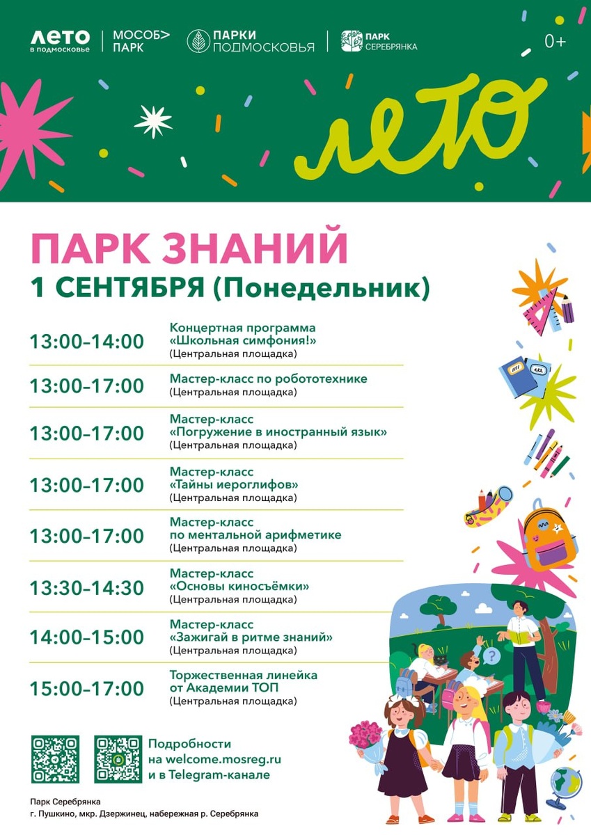 📚🎈🎉Для школьников в честь Дня знаний и начала учебного года подготовили праздники в парках Ивантеевки и Пушкино, а также на набережной реки Серебрянки. @pushkinomedia