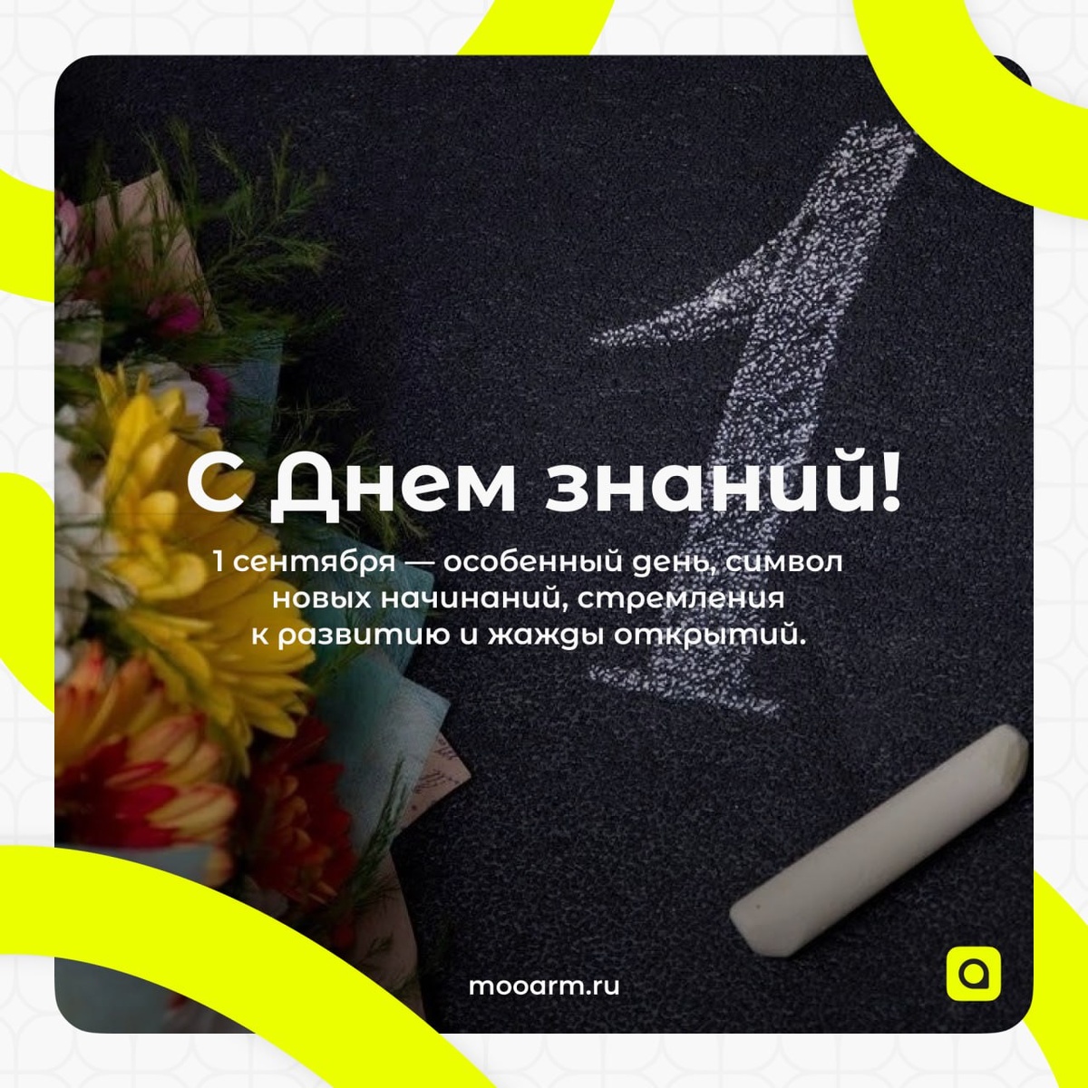 📚 С Днём знаний! Для школьников и студентов это время знаний и дружбы, для педагогов — труд и вдохновение, для родителей — гордость и поддержка. Каждый из нас вспоминает этот день с теплом, ведь именно образование формирует личность и открывает путь к будущим успехам. Молодёжь — главный двигатель перемен. И именно сегодня начинается новый этап, полный возможностей для роста и реализации идей. Желаем всем уверенности в своих силах, интереса к новому и больших достижений! Пусть этот учебный год станет успешным и плодотворным! С праздником! ✨ mooarm.ru