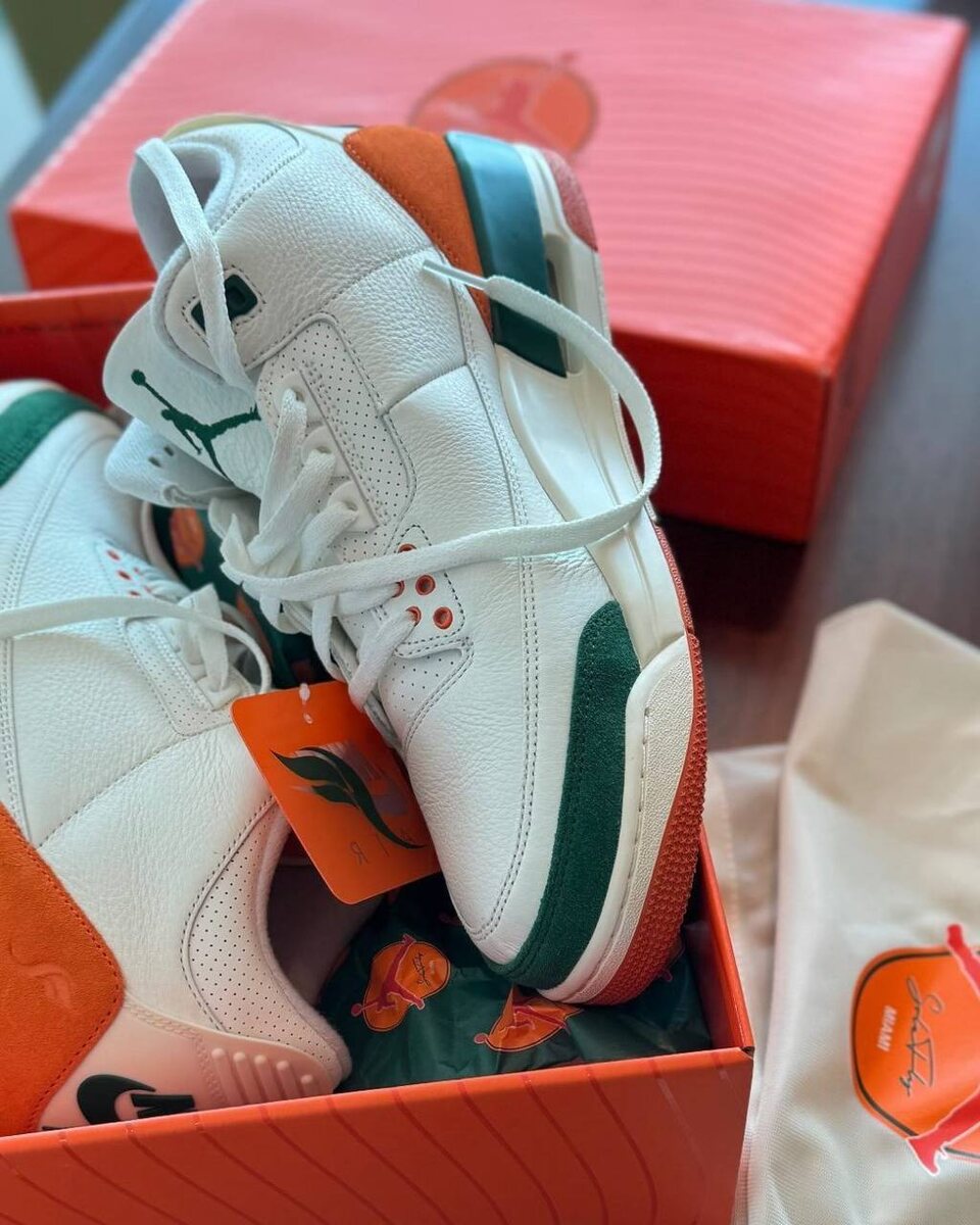 Легенды Miami Hurricanes Football Эджеррин Джеймс и Андре Джонсон показали грядущую коллаборацию SoleFly x Air Jordan 3. Релиз ожидается в декабре этого года.