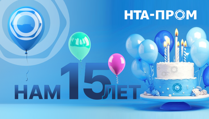 Уважаемые партнёры! В этом году компании «НТА-Пром» исполняется 15 лет. За эти годы были успешно реализованы сотни проектов различного уровня сложности. Благодарим всех, кто был с нами все эти годы! Мы развивались вместе с Вами, работая над Вашими задачами и стараясь найти для Вас самые лучшие решения. Развивая новые технологии, мы движемся дальше на основе принципов долгосрочного партнёрства, индивидуального подхода к каждому заказчику и постоянных улучшений. Будем рады новым совместным проектам с Вами! С уважением, команда «НТА-Пром».