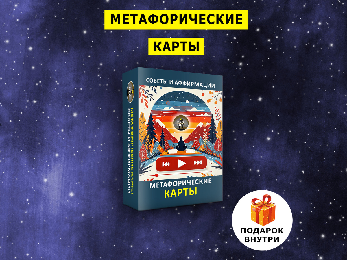 🎴 Метафорические карты "Я МОГУ ВСЕ" ✨ Это не просто карты — это ваш личный проводник к счастью, изобилию и позитивным переменам. Каждая карта несёт совет и аффирмацию от Вселенной, которые помогут вам найти ответы, обрести уверенность и привлечь в жизнь лучшее. 📦 В каждой коробке: