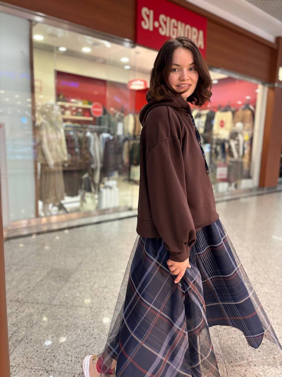 НОВИНКИ🤎🤎✨ Юбка в клетку с атласный поясом на резинке Расцветки синий, зеленый ☑️ Италия 🇮🇹 5.800₽ Худи с аппликацией «Цветок» в клетку🌹 Италия 🇮🇹 6.800₽