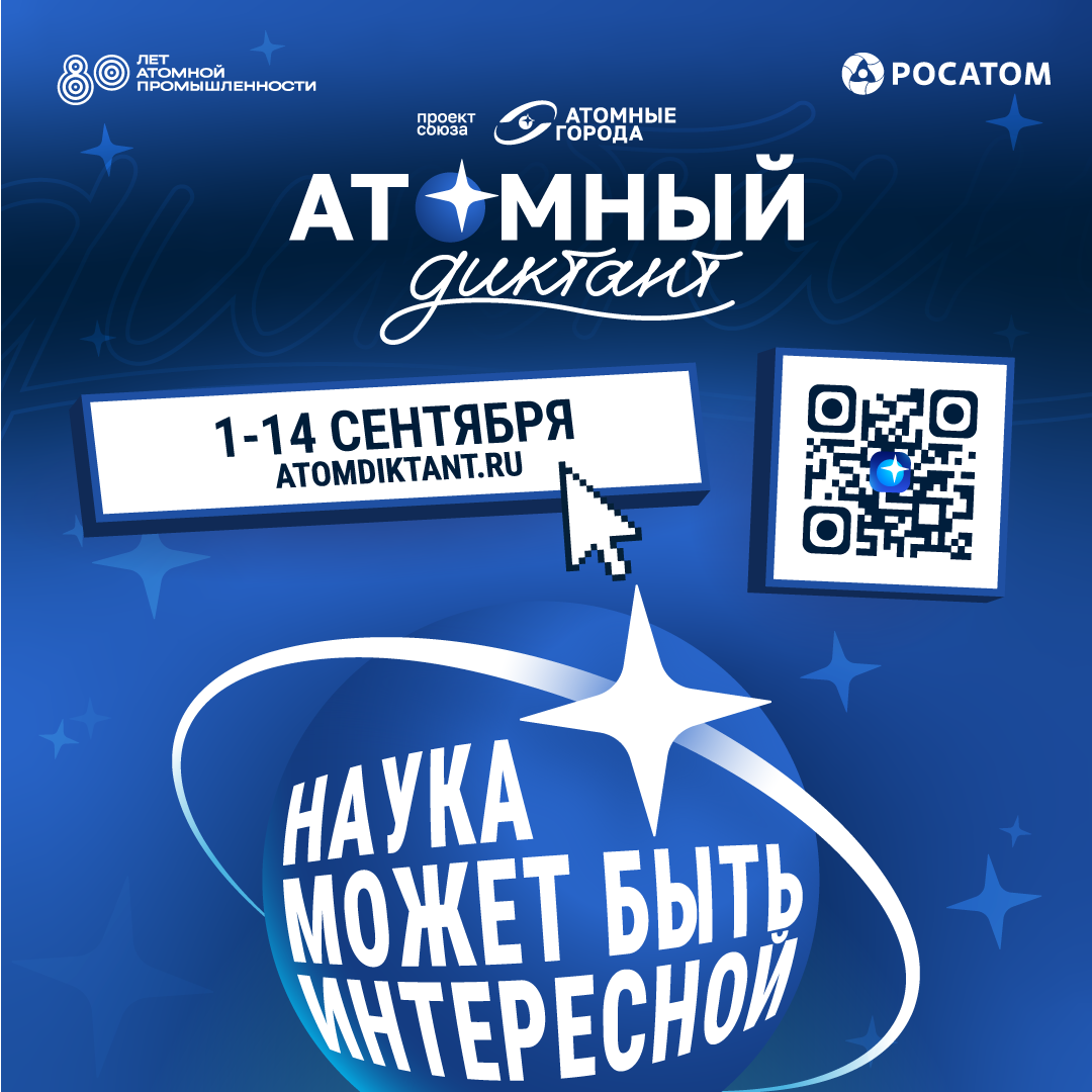 Союз женщин России оказывает информационную поддержку. С 1 по 14 сентября каждый желающий сможет проверить свои знания об атомной отрасли в рамках просветительской акции «Атомный диктант». Этот уникальный проект, организованный Союзом «Атомные города» при поддержке Госкорпорации «Росатом», уже пятый год подряд знакомит участников с достижениями российской науки и технологий. Проект проходит в увлекательном формате: 30 заданий, часть которых представлена в видеороликах с участием известных деятелей культуры, науки и образования. Каждый участник получает именной электронный диплом, а также шанс выиграть памятные подарки. В юбилейный год организаторы подготовили ряд нововведений: За пять лет существования в проекте приняли участие более 100 000 человек из разных стран. В 2025 году, который совпадает с 80-летием атомной промышленности России, организаторы ожидают рекордное число участников. "Атомный диктант“ — это возможность проверить свои знания и узнать много нового о роли атомных техно