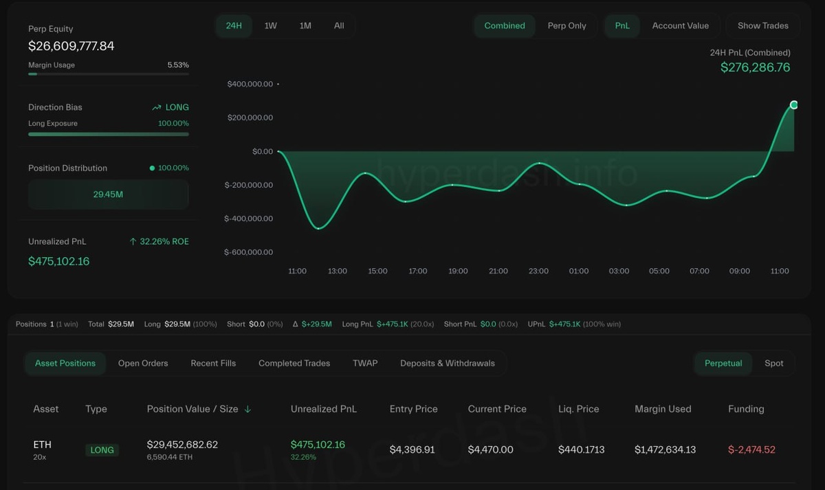 #криптовалюта #eth Чувак открыл позицию LONG по ETH на 29 млн долларов, либо он что то знает, либо лудик зашел в ALLIN 😅 Давайте понаблюдаем за "успехом" или "крахом" очередного перспективного трейдера с площадки HyperLiquid Его счет можно смотреть вот тут: перейти