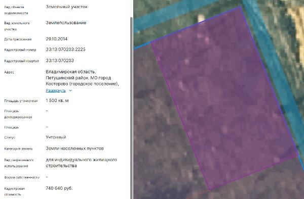 Название: земельный участок с кадастровым номером 33:13:070203:2225, площадью 1 500 кв.м., адрес: Владимирская область, Петушинский район