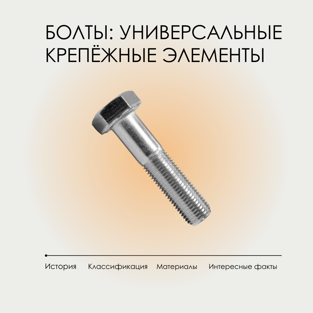 Болт — это один из самых универсальных и распространённых видов крепежа в промышленности, строительстве, машиностроении и бытовых системах. На первый взгляд это просто металлический стержень с резьбой и головкой, но за его использованием стоят инженерные расчёты, материалы высокой прочности и стандарты безопасности. От правильного выбора болтов зависит долговечность конструкций, точность механизмов и безопасность людей. История болтов История болта насчитывает сотни лет. Первые механические соединения с винтовой резьбой использовались в деревянных конструкциях в Средние века. Постепенно резьба стандартизировалась, появились металлические болты для мостов, станков и механизмов. В XX веке введение стандартов DIN, ISO и ГОСТ позволило унифицировать болты, определять их размеры, классы прочности и марки сталей. Сегодня болт — это не просто крепёж, а инженерный элемент с точной характеристикой, рассчитанный на конкретные нагрузки и условия эксплуатации. Классификация болтов По форме головки