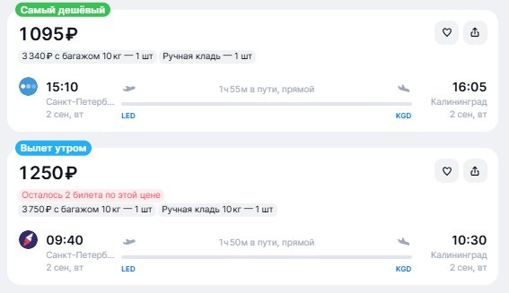 ✈️Санкт-Петербург - Калининград от 1100 рублей