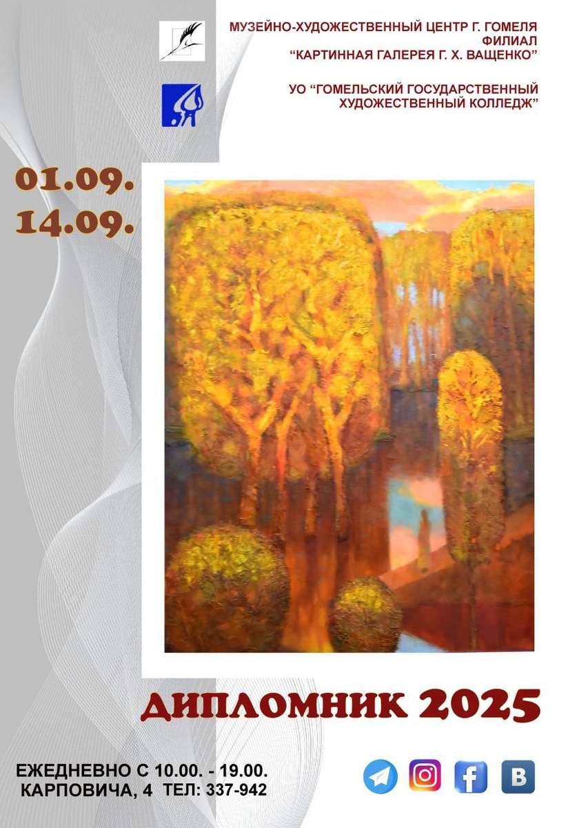 1 сентября в 14.00 состоится торжественное открытие выставки дипломных работ выпускников учреждения образования "Гомельский государственный художественный колледж" - ДИПЛОМНИК 2025