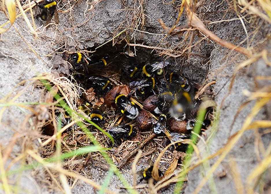 Если раньше вы не задавались таким вопросом, то сейчас наверняка заинтересуетесь. Хотя логичнее было бы спросить как выглядят самцы шмелей, потому что устройство шмелиной семьи сродни пчелиной. Хоть мы и видим шмелей обычно по одному, а не стаей, шмели – общественные насекомые. Те из них, что летом постоянно у нас на виду, – это рабочие самки с редуцированными органами размножения. Они кормят и охраняют семью, но в размножении не участвуют. То есть вот так и выглядит большинство шмелиных самок, применительно к которым мы используем местоимение "он": крупные пушистые гулкие шарики, с утра до вечера ныряющие в цветы. Просто слово "шмель" мужского рода, несмотря на то что подавляющее большинство из них – женского пола, как пчелы и осы, отсюда и путаница. В первой половине лета мы видим исключительно рабочих самок. Видим их постоянно, в отличие от самцов и главной самки улья. Они показываются на глаза в другое время. Самцы появляются на свет и вылетают из родительского гнезда во второй