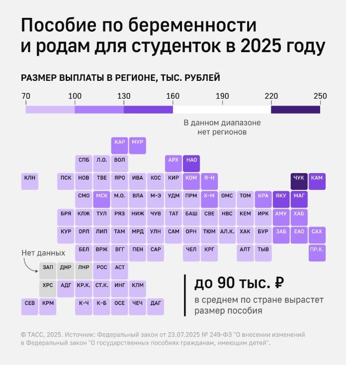 ‼️Соцфонд начал прием заявок от студенток на пособие по беременности и родам Теперь услуга стала централизованно предоставляться на федеральном уровне. Ранее ее оказывали учебные заведения в регионах. 👉 Кроме портала госуслуг, заявки принимаются в МФЦ и клиентских службах фонда. Для того чтобы оформить пособие, необходимо очно представить справку о беременности из медицинской организации и справку учебного заведения об обучении, в котором указывается срок отпуска по беременности и родам. При этом получить выплату могут не только россиянки, но и иностранные студентки и студентки без гражданства, постоянно проживающие на территории России. Главное — форма обучения должна быть очной.