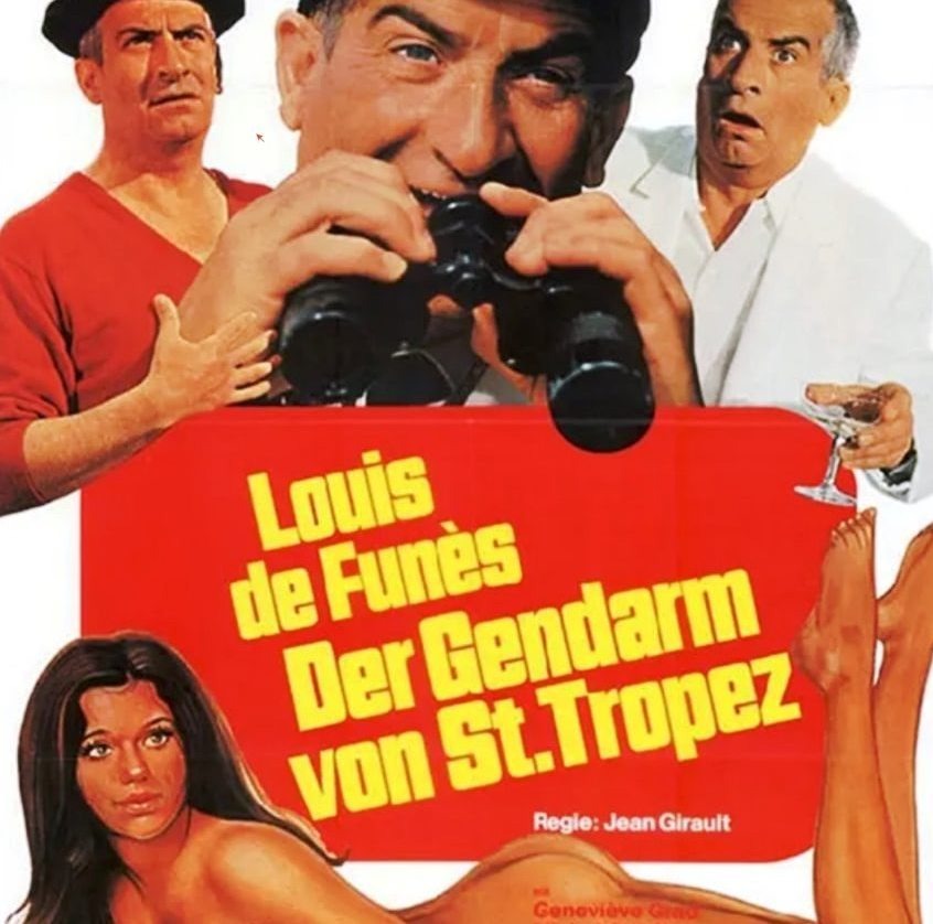 Жандарм из Сен-Тропе / Le Gendarme de St. Tropez. Франция-Италия, 1964. Режиссер Жан Жиро. Сценаристы: Ришар Бальдуччи, Жан Жиро, Жак Вильфрид. Актеры: Луи де Фюнес, Женевьева Град, Мишель Галабрю, Патрик Лаффон, Мадлен Делавевр, Жан Лефевр, Кристиан Марен, Ги Гроссо, Мишель Модо, Джузеппе Порелли, Габриэле Тинти, Жан-Пьер Бертран, Клод Пьеплю, Мари Паком и др. Комедия. Премьера: 9.09.1964. В кинопрокате РФ – с 1 июля 1992. Прокат во Франции: 7,8 млн. зрителей.