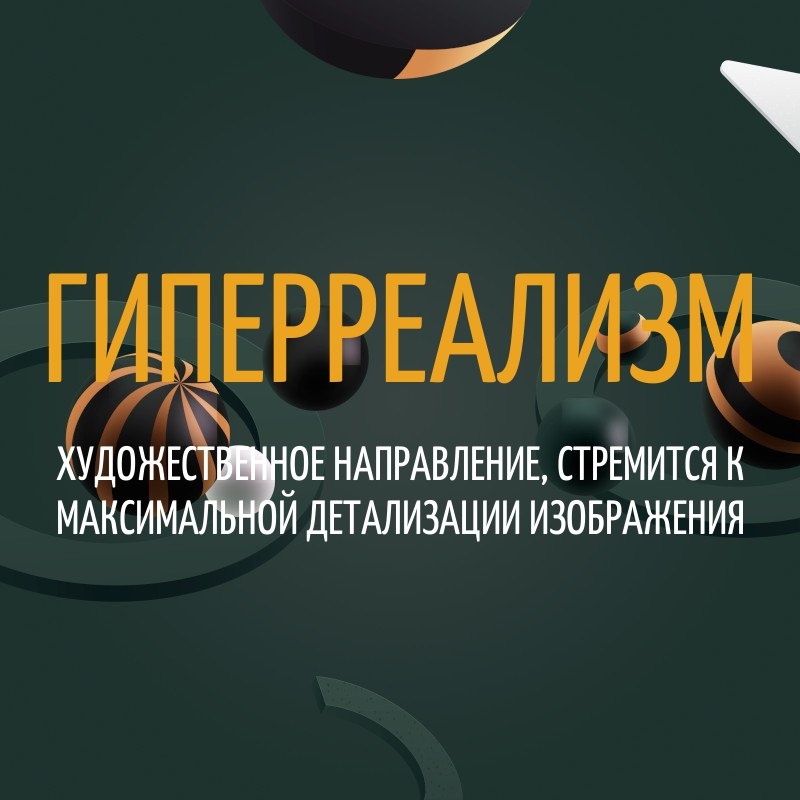 ГИПЕРРЕАЛИЗМ художественное направление, стремится к максимальной детализации изображения Гиперреализм возник в 1960–1970-х как ответ на абстракцию: художники начали создавать картины и скульптуры с фотореалистичной точностью. Главная задача: изобразить объект так, будто это фотография, передать мельчайшие детали поверхности – поры кожи, блики, текстуру тканей. Часто гиперреалисты обращаются к обычным предметам, человеческим лицам или урбанистическому пейзажу. Их работы поражают вниманием к деталям, при этом нередко содержат подтекст: критика потребительства или размышления о виртуальности восприятия. Забавно, что некоторые зрители спрашивают у авторов: «Это распечатка?», настолько картины похожи на фото. 👀 Гиперреализм популярен на аукционах, коллекционеры любят эти произведения за впечатляющий технический уровень.
