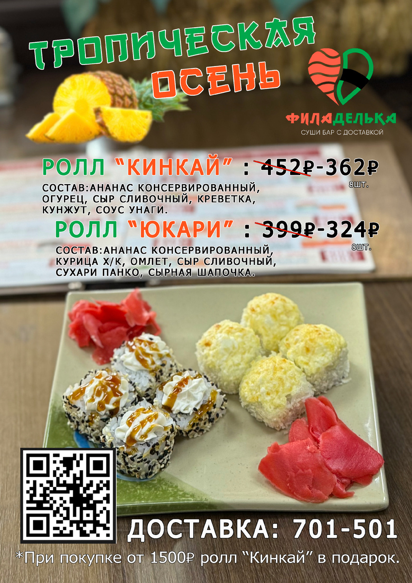 Осенью бывает не только опавшие листья и горячий чай. В наших любимых кафе появились свежие новинки – роллы Кинкай и Юкари.