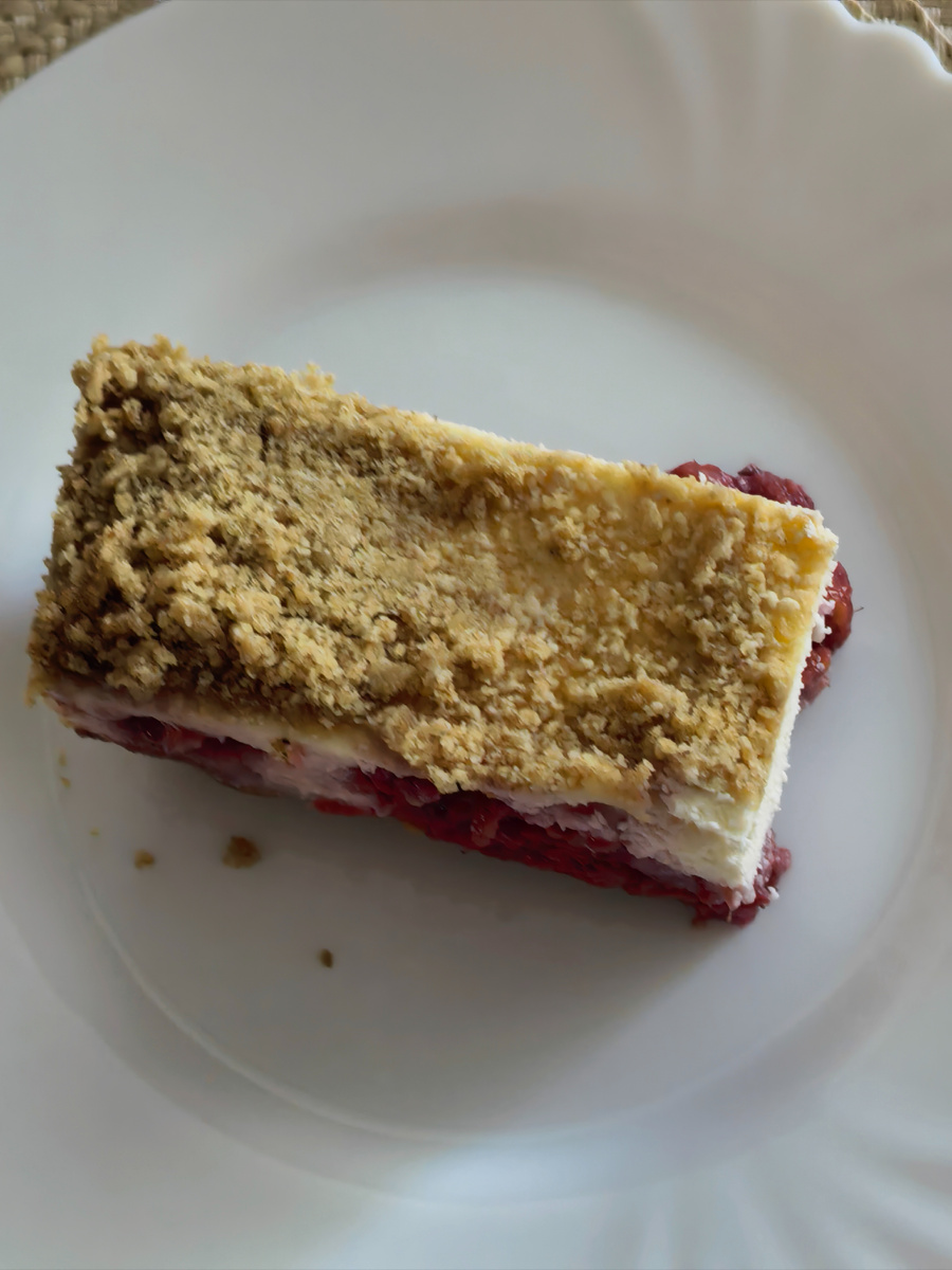 Тесто 180 - 200 гр сливочное масло. 200 - 250 гр овсяной муки ( может быть больше или меньше , концентрация тесто должна быть в виде крошки.). 1 ч. л разрыхлителя. Ванильный сахар по вкусу и желанию. ( я добавила 1 ч. л) Все смешать и превратить в крошку. Начинка 720 гр творога (4 пачки по 180 гр) 3 куриных яйца Заменитель сахара или мёд по вкусу Кукурузный крахмал 1 ст. л с горкой или 2 ст.л без горки. Ванильный сахар по желанию и вкусу. ( я добавила 1 ч. л) Все хорошо перемешать. Ягоды или фрукты любые по желанию. Собираем в форме для запекания у меня стеклянная размер 33,5 см на 19 см высота 7 см. Половину теста в смазанную маслом форму для выпечки. Сверху ягоды или фрукты. Посыпаем крахмалом кукурузным. Всю начинку ( творожную). Вторую половину теста. Выпекаем в духовке до готовности. * Если форма стеклянная или керамическая , то ставим в холодную духовку. *Разрезать её можно через 12 часов! Приятного чаепития .