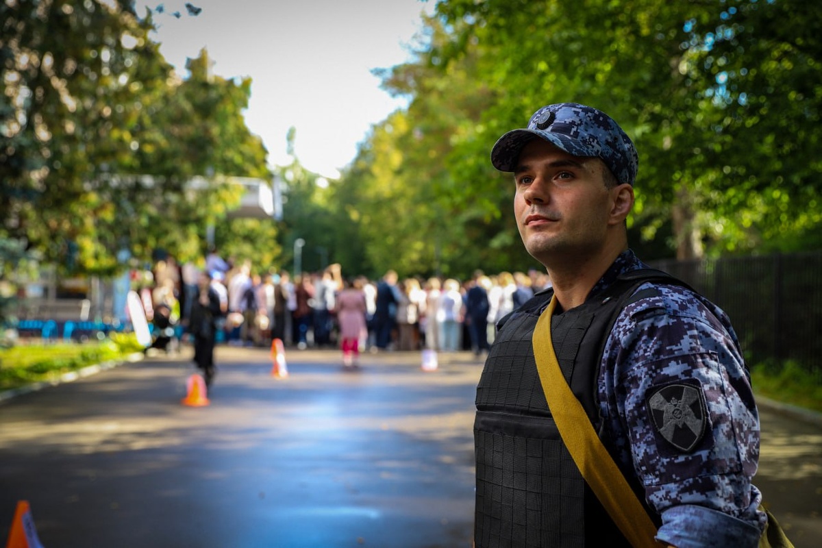 Сотрудники Главного управления Росгвардии по г. Москве и военнослужащие соединения по охране общественного порядка Центрального округа войск национальной гвардии совместно с МВД обеспечили охрану общественного порядка и безопасность граждан во время праздничных мероприятий, посвященных Дню знаний. В преддверии 1 сентября сотрудники вневедомственной охраны и лицензионно-разрешительной работы провели комплекс профилактических мероприятий: проверили работоспособность систем тревожной сигнализации в учебных заведениях и проинспектировали сотрудников частных охранных организаций, обеспечивающих безопасность этих объектов. В День знаний сотрудники вневедомственной охраны, ОМОН «Авангард» и военнослужащие дивизии Росгвардии обеспечивали безопасность непосредственно в школах и на прилегающих территориях. Экипажи вневедомственной охраны патрулировали улицы вблизи мест проведения торжественных линеек. Кроме того, накануне нового учебного года сотрудники столичного главка Росгвардии приняли участ