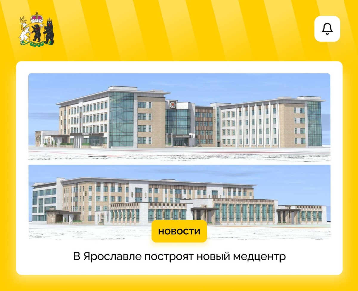 Современный консультативно-диагностический и реабилитационный центр начнут строить в Ярославле. Начало работ запланировано на 2026 год. Четырехэтажный медцентр возведут на улице Университетской в Заволжском районе города. Специалисты будут оказывать высококвалифицированную помощь по многим направлениям: хирургия, терапия, гинекология, урология, дерматология, аллергология, иммунология, офтальмология, оториноларингология, эндокринология, неврология и реабилитация. Благодаря реализации этого проекта появится 180 новых рабочих мест. 🟡Подписывайся на официальный канал Ярославской области в MAX