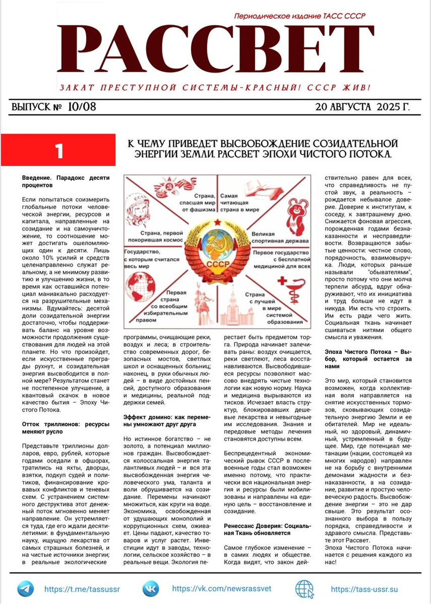 governmentussr.org25.08.2025г. Газета Рассвет: GoldCoin SUN, Аэролит, СМЕРШ: Официальные документы в газете «Рассвет» №10 Юбилейный Выпуск