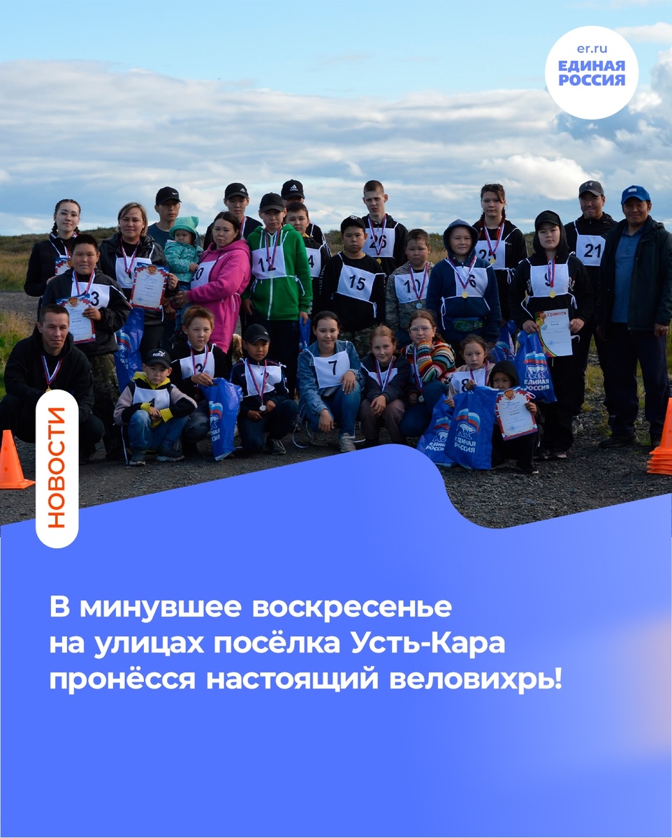 Первичное отделение Всероссийской политической партии «Единая Россия» №27 п. Усть-Кара Заполярного района Ненецкого автономного округа совместно с работниками дома культуры и школы организовали яркое спортивное событие — велогонки «Крути педали» по пересечённой местности!