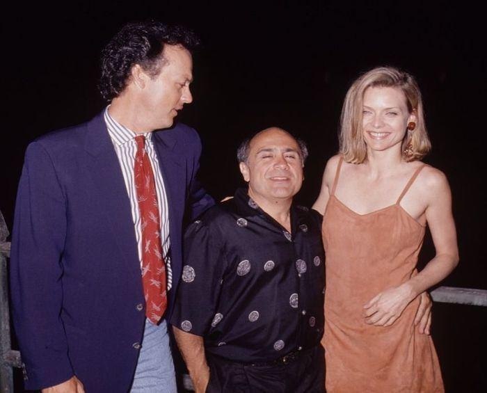 Майкл Китон, Дэнни Де Вито и Мишель Пфайффер на премьере "Бэтмен возвращается", 1992 год