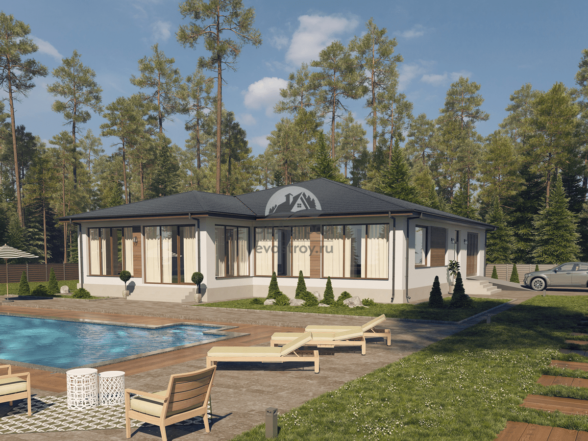 Номер проекта: П2 Разделы проекта: Архитектурный и Конструктивный разделы Узнать о проекте больше можно на сайте evastroy.ru или по телефону +7 (495) 175-30-40 Общая площадь: 253 м2