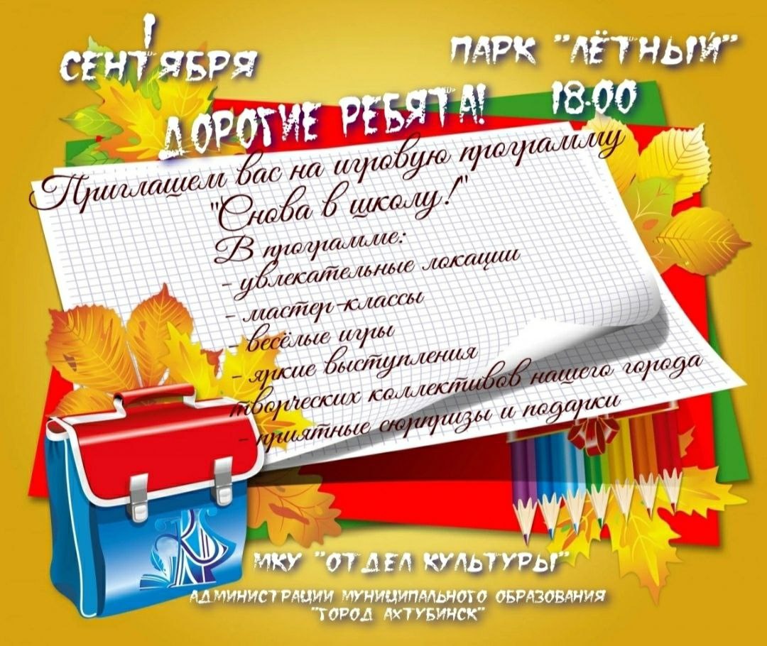 Городской отдел культуры приглашает всех школьников и их семьи отметить начало нового учебного года