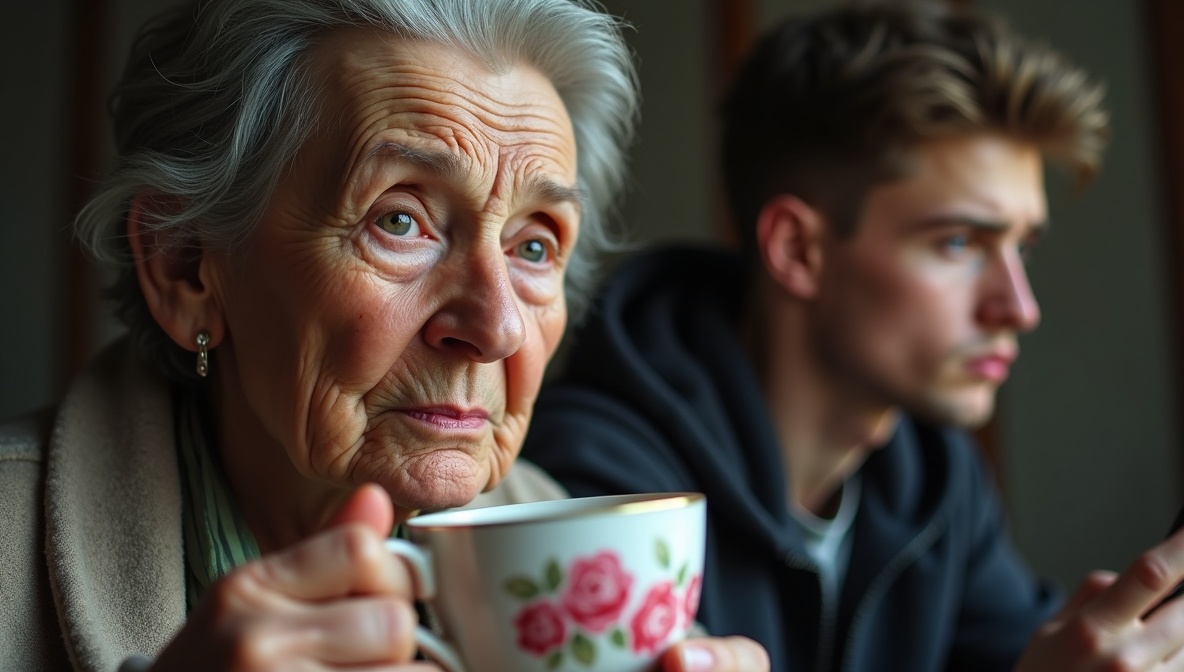 Валентина Ивановна замерла с чашкой в руках. Чай остыл, но она всё держала фарфоровую чашечку с розочками, подарок от покойного мужа к серебряной свадьбе. Внук Артём сидел развалившись в кресле, пальцы быстро скользили по экрану, лицо освещал холодный свет.