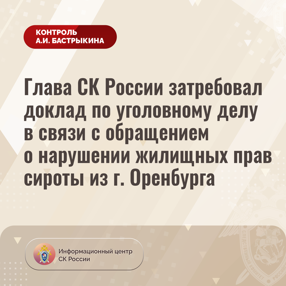 Глава СК России затребовал доклад по уголовному делу в связи с обращением о нарушении жилищных прав сироты из г. Оренбурга