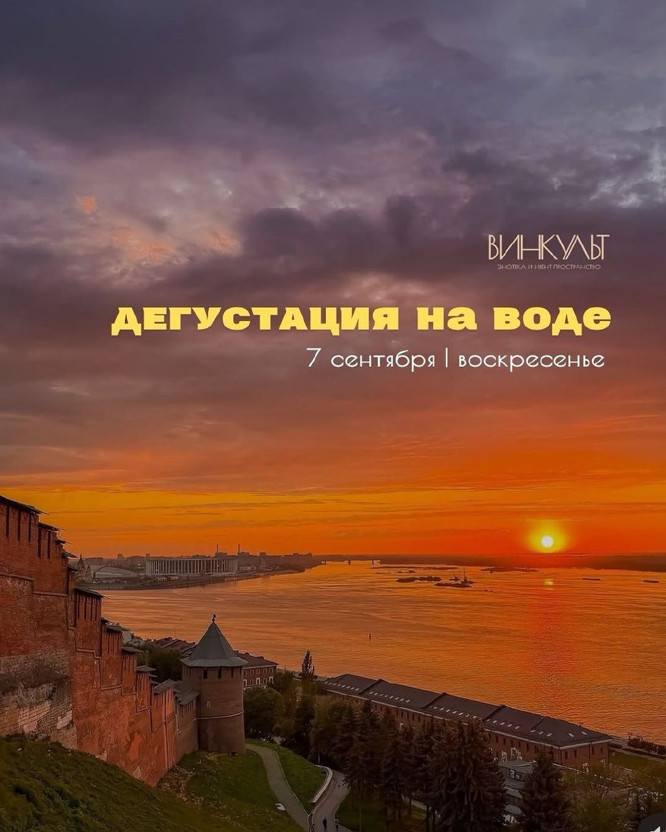 Винкульт организовывает дегустацию вина в прогулкой на катере по нижегородской акватории. На этот раз компанию составит винодельня Табия из Краснодарского края: 1.Розовый пузырь, петнат брют розовое 2.Рислинг, сухое белое 3.Олег(Диаманд), сухое белое 4.Цитрон, петнат брют белое 5.Цитрон, сухое белое 6.Рубин, сухое красное 7 сентября 😄 Мероприятия Нижний Новгород. Я местный!