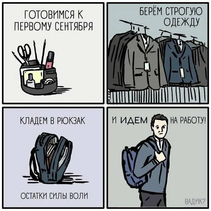 Любимые мои, поздравляю вас с 1 сентября! 🎉📅 С Днём знаний! 📚🎓 И, если честно, приношу соболезнования всем тем, кто имеет к этому отношение (школьникам, студентам, родителям школьников и студентов) 🥲🥀. Пришло время поработать 💼, а лето позади 🌞👋. Новости так себе 😐. Никогда не понимала, почему этот день считается праздником, а не днём траура 🙃. Типа: «поздравляем вас с завершением каникул и тёплого времени года» 🏖️🍦 Сарказм какой-то. По-другому и не назовёшь 🤷♀️😅. Разделяете моё мнение или нет? ❓ Напишите в комментариях 💬. А для настроения оставлю тут смешную картину 🖼️😂, чтоб и 01.09 улыбнуться 🙂, но она больше про нас, про работающих. ❤️❤️❤️