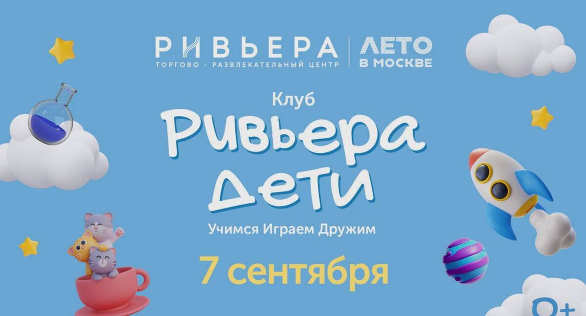 🆓 Бесплатный клуб «Ривьера. Дети»: Три кота “Большая перемена” в @rivieramoscow 🗓️7 сентября в 14:00 📍ТРЦ «РИВЬЕРА» Котики Карамелька, Коржик и Компот ждут Вас на мероприятие клуба «РИВЬЕРА ДЕТИ», ТРИ КОТА “БОЛЬШАЯ ПЕРЕМЕНА”: - Интерактивный игровой спектакль “Учат в школе” - Мастер класс “Самолетики” и соревнования - Анимационная программа “Дворовые игры” - Шоу мыльных пузырей и фото в мыльном пузыре - Шариковая дискотека “Миу-миу танцы” - Фото с Котятами 🆓 Бесплатно Подробнее ЗДЕСЬ @Together_with_kids Пост носит информационный характер