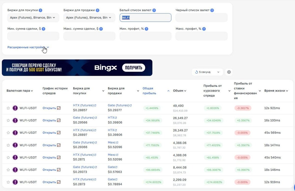 Прямо сейчас огромные спреды на листинге Монета - WLFI