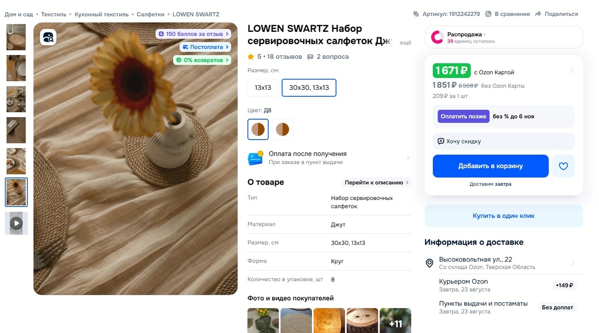 💬 Важно: я ничего не навязываю, просто делюсь личным опытом. Эта подборка - для вдохновения и хорошего настроения. Кухня - это место, где каждый день кипит жизнь. Тут мы готовим, собираемся всей семьёй и создаём уют. А ведь часто именно маленькие вещи делают кухню удобнее и красивее. Я собрала для вас подборку простых, но очень полезных помощников. Круглые джутовые салфетки украсят стол и защитят его от пятен и горячей посуды. Можно подставить под тарелки, вазы или блюда с фруктами. В наборе несколько размеров, ухаживать легко, просто протёр влажной губкой. Артикул: 1912242279