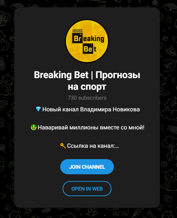 Ищете бесплатные прогнозы на спорт? Канал t me/+SEzYatwbM0hYEqJx в Telegram кажется заманчивым предложением. Но не спешите радоваться. Наша проверка показывает: это типичный пример проекта, который ведет своих подписчиков прямиком к потере денег, даже несмотря на отсутствие прямой платы за подписку. Вот почему мы настоятельно не рекомендуем с ним связываться. Основатель канала, некто Владимир Новиков, с самого начала окутал свой проект туманом из лжи. Он заявлял, что Breaking Bet — его новый проект, а предыдущий «был заблокирован». Звонок номер один! Честные каналы не блокируют массово. Скорее всего, предыдущий проект был забанен за мошенничество или жалобы пользователей. Куда пропал и сам Владимир с каналом, который затих после 2019 года? История темная и очень сомнительная. ⚠️ ВАЖНО! Проект, который прошел проверку.