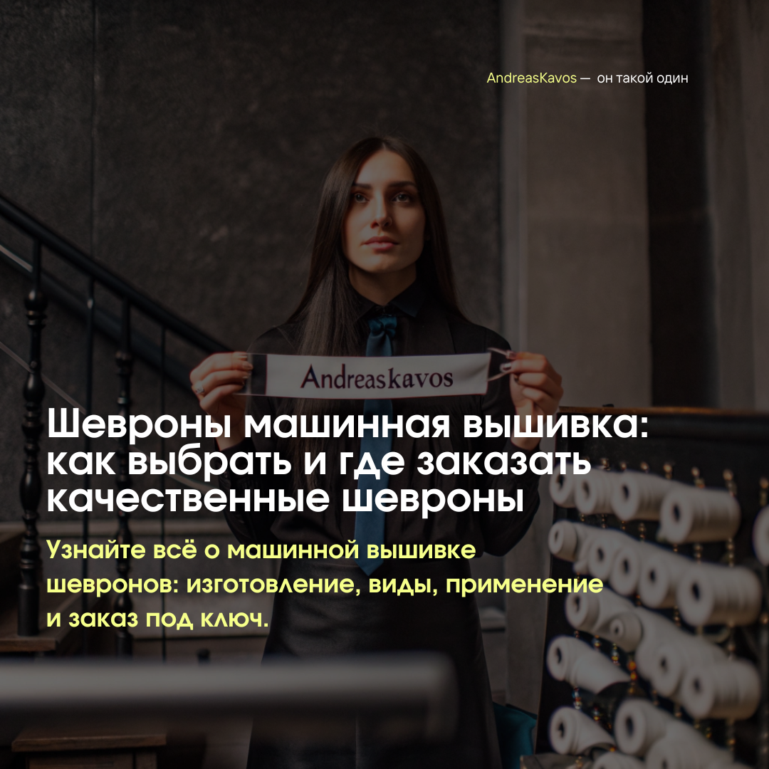 Компания ANDREAS KAVOS предлагает комплексный подход к изготовлению шевронов методом машинной вышивки. Она сочетает многолетний опыт, современное оборудование и индивидуальный подход к каждому заказу. Среди преимуществ сотрудничества: высокая точность вышивки, долговечность изделий, широкий выбор материалов и цветов, а также возможность изготовления шевронов любых тиражей — от единичных экземпляров до массовых партий. Компания также предоставляет профессиональные консультации по выбору дизайна и материалов, что позволяет получить продукт, полностью соответствующий требованиям клиента.