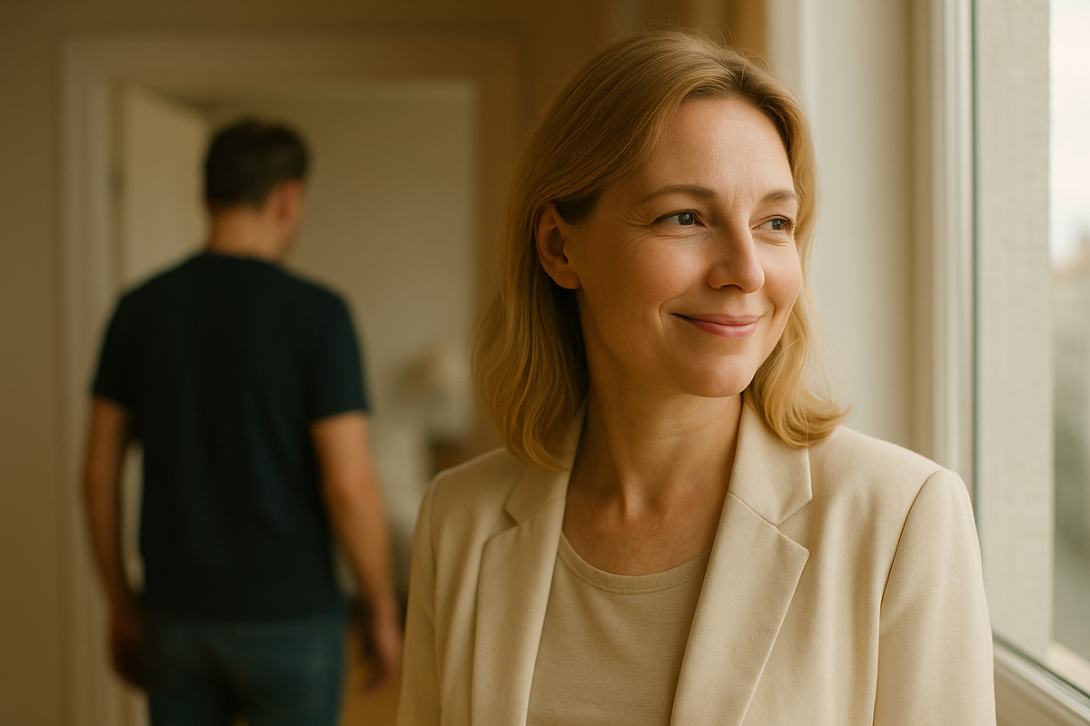 Его шаги ещё долго звучали в тишине квартиры. Лариса стояла неподвижно, но на её лице появилась лёгкая, почти загадочная улыбка. Она знала: эти слова — не приговор. Это освобождение.
