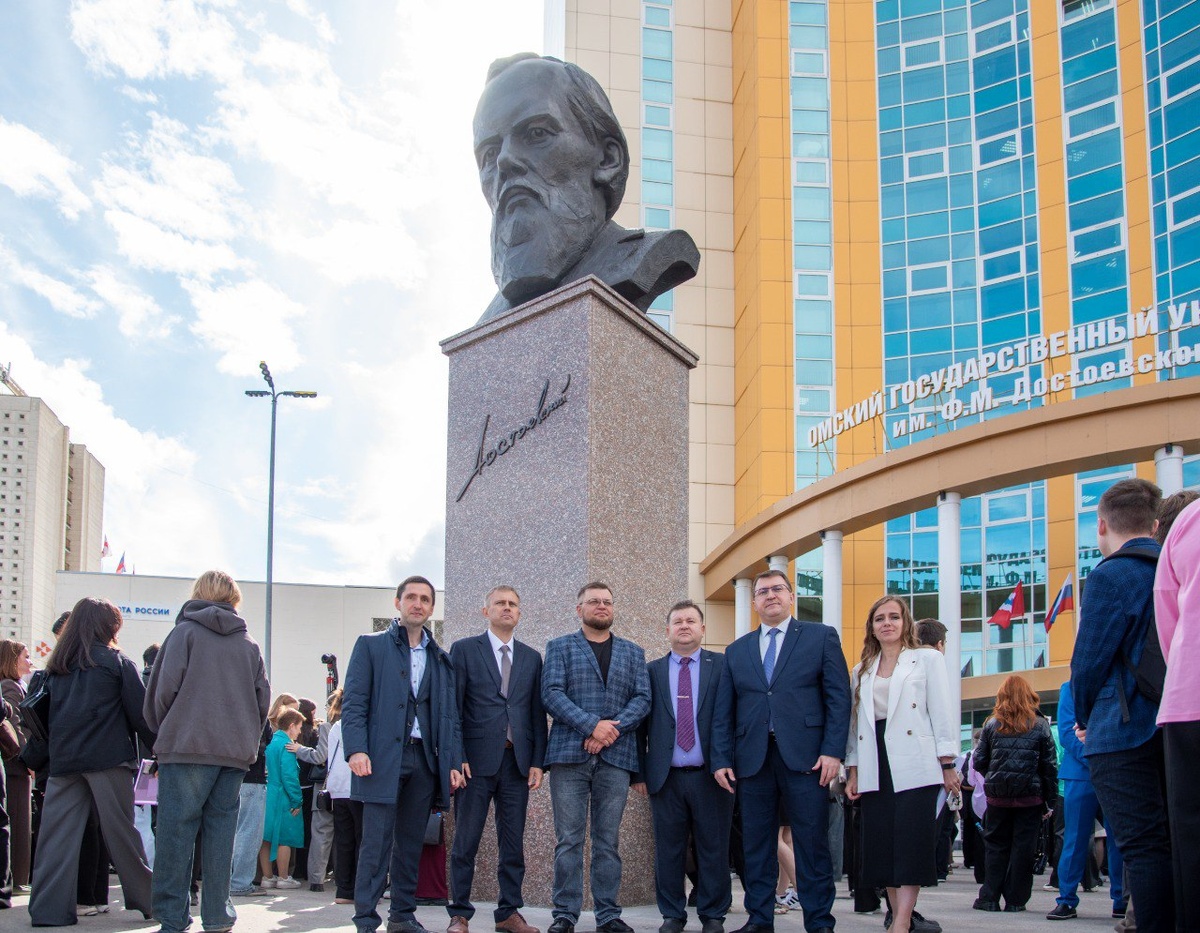 В первый день нового учебного года в Омском государственном университете имени Ф.М. Достоевского прошли торжества. На центральной площади перед главным корпусом вуза состоялось торжественное открытие памятника писателю и мыслителю, в честь которого он назван. Как рассказали в пресс-центре университета, идея об установке памятника вынашивалась ещё с момента присвоения вузу имени по инициативе ректора Геннадия Геринга в 2004 году, однако воплотилась она только сейчас. Скульптуру создал художник Виталий Шевченко на деньги мецената, владельца ресторана «Шато» Шамила Шихмирзаева и при поддержке губернатора Виталия Хоценко. «Над проектом памятника Достоевскому я работал 15 лет. Менялось представление о памятнике, были разные варианты. Но поскольку именно в Омске сформировался тот Достоевский, которого мы знаем, я решил изобразить его мыслителем, философом. Так пришел к его портретному образу», — рассказал скульптор. Также на площади прошла встреча и.о. ректора Ивана Кротта с первокурсниками