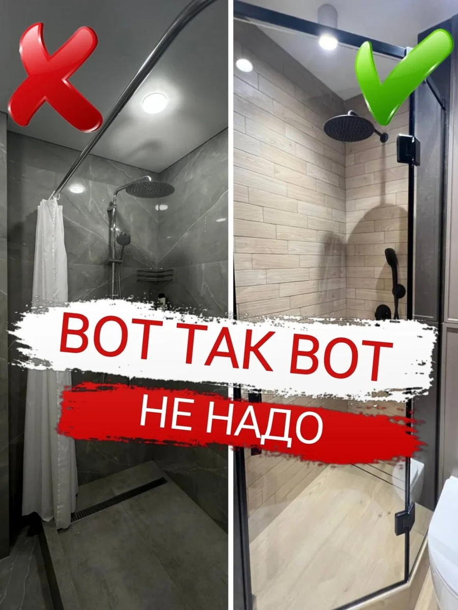 Вот так вот не надо - Откажитесь от мебели на ножках в пользу подвесных моделей - Датчик протечки лучше скрыть под плиткой - Свободное пространство над инсталляцией используйте под системы хранения - Ершик и прочие бытовые мелочи лучше убрать с пола и закрепить на стену - Вместо навесных металлических полок предусмотрите встроенные полки в нише - Стеклянная шторка в разы практичнее текстильной, учтите это Заказать дизайн-проект или ремонт под ключ любой сложности в СПб, Москве, Краснодаре или Сочи можно ____ Студия ремонта Александра Хохлова #СанСаныч_я Тел: 8 981 899 11 67 @remont_kvartir_812 ____