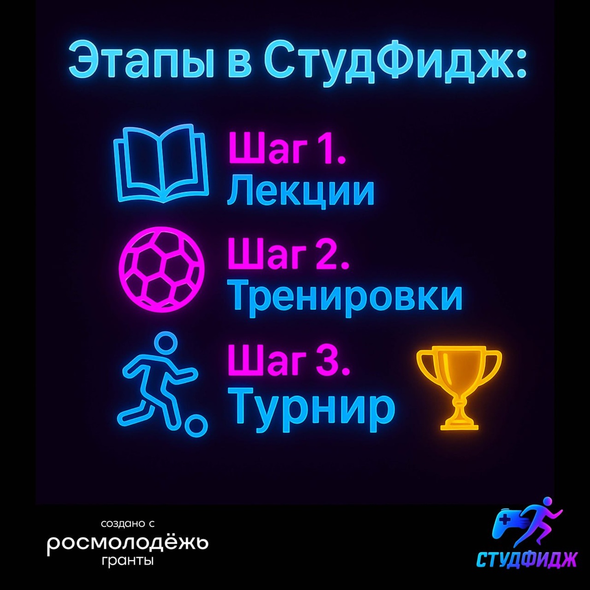 От лекций до турнира: пройди все этапы СтудФидж и стань чемпионом 🏆 Шаг 1. Ознакомительные лекции и мастер-классы. Ты узнаешь: — как спорт объединяется с цифровыми технологиями — что такое фиджитал-футбол, фиджитал-баскетбол и Just Dance — какие возможности открывает фиджитал для саморазвития и драйвового студенческого досуга Шаг 2. Тренировки с опытными тренерами: · Фиджитал-футбол (мини-футбол + FC24) · Фиджитал-баскетбол (2x2 + NBA на PS5) · Ритм-батлы в Just Dance Шаг 3. Грандиозный Фиджитал-турнир в Университете Льва Толстого! Командные матчи, цифровые батлы, спортивный азарт и атмосфера настоящего чемпионата. Победителей ждёт награждение и шанс попасть в сборную университета! 👉 Это твой шанс: · прокачать тело и мозг · найти единомышленников · стать частью нового спортивного движения Совсем скоро стартуем! Следи за анонсами и собирай команду — фиджитал ждёт именно тебя! Проект реализуется при поддержке «Росмолодёжь. Гранты». #Росмолодёжь #РосмолодёжьГранты #УниверситетЛьв