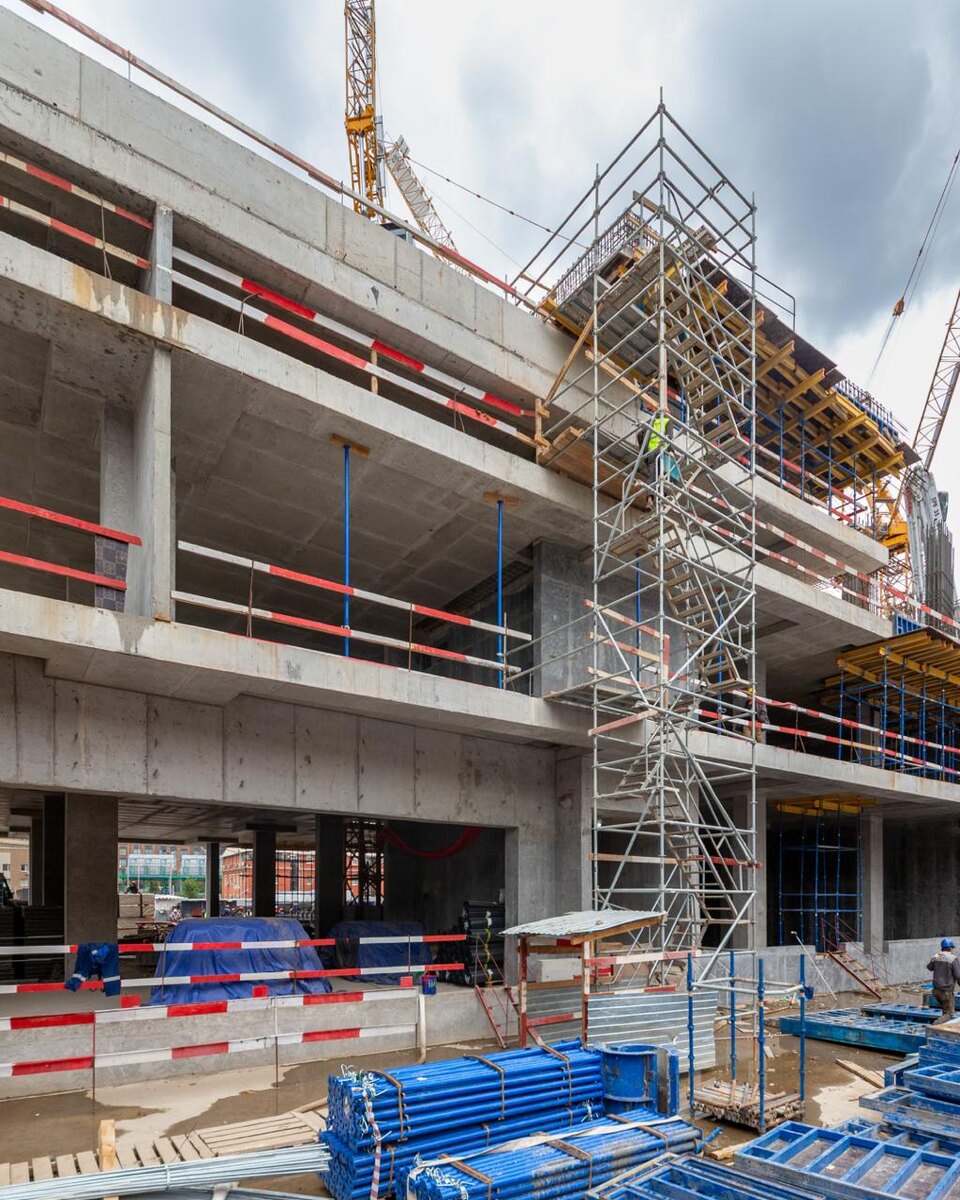 ▫️монолитные работы в высотной части вышли на отметку +10,050 (уровень 3 этажа), а в стилобатной части Б — на отметку +6,000 (2 этаж);
